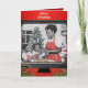 Celebre la alegría de las tradiciones de vacaciones con esta encantadora tarjeta de Navidades que presenta un ilustracion de estilo vintage de una madre y sus dos hijas horneando galletas en una acogedora cocina. Situada contra una ventana nevada y un brillante árbol de Navidad, la escena captura la magia de la familia, la unión y los dulces momentos compartidos durante la más maravillosa época del año. Los vibrantes delantales rojos se desprenden maravillosamente del fondo blanco y negro, creando un ambiente nostálgico pero atemporal perfecto para las vacaciones.