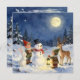 A sweet Christmas card with a watercolor illustration of elves building snowman with deer and bunnies nearby on a cold winter night. On the back is a sweet holiday poem you can leave or edit and sign your names!