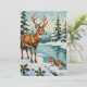 Tarjeta Festiva Vintage Deer and Robins Christmas Scene