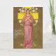 Esta tarjeta del bonito ofrece una imagen del vintage de una mujer delante de una cruz, rodeada por los lirios de pascua. El texto dice los "saludos de Pascua".