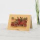 Un vintage Papá Noel en su coche viejo, togther con su conductor. En las porciones traseras de juguetes y de algunos árboles de navidad.