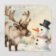 Tarjeta Festiva Vintage Snowman & Reindeer Personalized Christmas