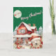Sumérgete en la magia de la Navidad con esta encantadora tarjeta de "Mugs and More by Azar". Mientras Papá Noel y sus renos surcan el cielo iluminado por la luna, una casa nevada da una cálida bienvenida, mientras que un oso polar alegre vestido con ropa festiva difunde la alegría de la temporada. Personaliza para compartir tu mensaje único de Navidad con estilo.