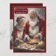 A charming Mrs. Claus baking with Santa Claus Christmas cookies and spreading love. The illustration has the couple wearing winter red robes and baking and getting ready for a Christmas party. In the front has a quote "Warm Cookies Warmer Hugs" and at the reverse are greetings that can be personalized with your own words.