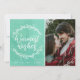 Envíe a alguien los deseos más cálidos con este mensaje tipográfico dibujado a mano rodeado de una corona de hojas y ramas blancas. Este diseño redondeado se basa en una textura de color de agua verde marino, ideal para las vacaciones. Añade tu foto familiar favorita y tu nombre para completar este diseño. Se coordina con mi juego de tarjetas de felicitación de deseos más cálidos.
