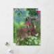 Si buscas algo original y único, esta tarjeta es una mezcla de acuarela y pintura digital con un auténtico conejo a ambos lados. El conejo se esconde bajo una rama de árbol en un hermoso campo de margaritas al atardecer. En la parte trasera hay el mismo conejito con un pollo. Mi amor por los animales lo inspiró. Disfruta de un arte único.