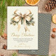 Tarjeta Festiva Watercolor Gold Bow Foliage Beige Merry Christmas