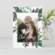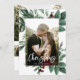 Esta es una alegre tarjeta plana de doble cara de Navidad con tipografía de escritura moderna, vegetación acuarela y follaje y foto oval. Cuenta con un total de 5 fotos. Fotos de prostooleh / Freepik.