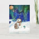 Tarjeta Festiva Whimsical Boreal Lights Nordic Village New Year