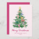 Tarjeta Festiva Whimsical Christmas Tree Bows Pink Non-Photo