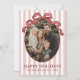 Tarjeta Festiva Whimsical Hand Drawn Coquette Red Bow Family Photo