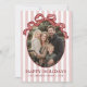 Tarjeta Festiva Whimsical Hand Drawn Coquette Red Bow Family Photo