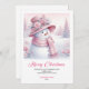 Tarjeta Festiva Whimsical Pink Snowman Digital Winter Scene Cards