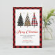 Tarjeta Festiva Whimsical Red Plaid Christmas Tree Leopard Pattern