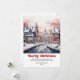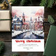 Tarjeta Festiva Whimsical rustic Christmas scene bright city art
