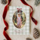 At the heart of the card is a vintage-inspired hand-drawn oval frame, adorned with a charming deep red bow at the top. This frame elegantly encases your cherished photo, adding a touch of whimsy and sophistication to your holiday greetings.