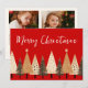 Esta tarjeta de dos Navidades fotográficos presenta un diseño festivo de invierno verde sobre un fondo rojo brillante. Personalizar fácilmente estas tarjetas mediante la función de personalización.