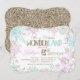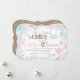 Purpurina pastel y plateado y copos de nieve con aspecto de Relieve metalizado sobre fondo blanco el invierno maravilla el diseño de la tarjeta de invitación de sexto cumpleaños.