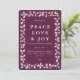 Tarjeta Festiva Winterberry Lino Print Holly deja el borde plano