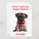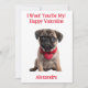 Para la perfecta tarjeta de San Valentín puedes personalizar no sólo el mensaje y el nombre de esta tarjeta de San Valentín, sino también puedes elegir un diseño con su raza de perro favorita - un adorable cachorro Pug.
