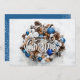 Hermosos Navidades con adornos azules y conos de pino, estas tarjetas no fotográficas incluyen el saludo personalizado, los nombres y el logotipo de su empresa en la parte posterior.