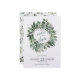 Un bonito diseño acuático de frondosas vegetación, inspirado en lujosas coronas estivales repletas de follaje de mil tonalidades verdes. Con un telón de fondo oscuro, podrían ser igualmente invitaciones estacionales para navidades o bodas nocturnos.