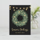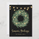 Tarjeta Festiva Wreath verde con luces de cadena dorada en negro