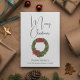 Tarjeta de navidad merry de estilo vintage con una corona de flores de estilo antiguo en verde y rojo, con un hermoso tipo de letra de guión. Personalízalo con tu apellido o cualquier texto personalizado que quieras incluir en esta temporada navideña.
