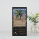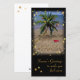 Palmeras, adornadas con adornos navideños en una playa de arena y "Feliz Navidad" escrito en la arena. No dude en cambiar el texto adicional "Season's Greetings ...para hacerte sentir cálido" Sellos coincidentes: Escuche la canción de Navidades de estilo hawaiano de Santa Island":