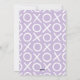 Crea una tarjeta de foto personalizada que tus amigos y familiares amarán. Este diseño de moda "Abrazos y Besos" presenta "XOXO" en un estilo simple de pinceladas, complementado con un patrón coordinado en el reverso. Personaliza la plantilla con una foto favorita, nombre y mensaje, perfecto para el Día de San Valentín, días festivos, cumpleaños, aniversario de bodas, baby shower, Día de la Madre u otra ocasión especial. Colores: lavanda púrpura y blanco. Disponible como tarjeta impresa o descarga digital.