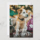 Envíe deseos de Yappy Holiday con esta linda tarjeta de Navidades de fotos de personalizado mascota. Simplemente sube una fotografía de tu bebé de piel y tu texto personalizar. Al revés hay un patrón festivo de gingham verde.