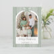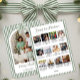 Celebrate a full year of memories with this elegant Christmas card featuring warm green-and-white watercolor stripes, a charming hand-drawn bow, and a modern arched photo frame on the front. The back showcases a clean 12-month photo grid with space for captions, perfect for highlighting your favorite moments from January to December. Personalize the names, year, greeting, and monthly text to create a heartfelt keepsake that beautifully captures your family's story throughout the year.