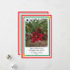 Festive wood Yule log with evergreen pine needle boughs, pine cones and red bow. Leave image on front, or Upload your own. Red and green Green geometric pattern with gold stars elements against white background. Insert Family Last Name and Year. Holiday greeting and red white candy canes and festive Christmas tree on backside. Original Photography and Artwork, Verse by TamiraZDesigns.