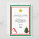 Festive wood Yule log with evergreen pine needle boughs, pine cone and red beige burlap bow Leave image on front, or Upload your own. Green and red geometric pattern with gold stars elements against white background. Insert Name and Year. Typography and red white candy canes and festive Christmas tree on backside. Original Photography and Artwork, Verse by TamiraZDesigns.