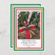 Tarjeta Festiva Yule Log Red Burlap Bow Green INSERT PHOTO