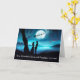 Una tarjeta de vacaciones para Navidades para un hijo y su nuera con una encantadora imagen de una pareja silueta bajo la luz de la luna en la víspera de los Navidades, con una gran luna llena, enmarcada por un árbol precioso, y por supuesto, Santa!