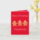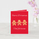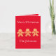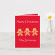 Esta es la tarjeta de vacaciones de Navidades personalizados que incluye a tres lindos hombres de jengibre parados en rojo. La parte posterior de la tarjeta presenta un hermoso patrón de hombres de jengibre con copos de nieve. Puede personalizar este diseño haciendo clic en el botón de personalización. Consulta mi colección para obtener productos de Navidades más hermosos