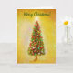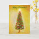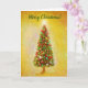 Tarjeta Festividad dorada en árbol de Navidad decorado en
