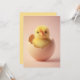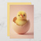 Una alegre chica amarilla con una expresión adorablemente feroz asoma desde una concha de huevo rota contra un suave fondo pastel. Perfecto para los temas de Pascua, los productos para bebés o la marca lúdica.
