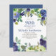 Invitación a la fiesta de cumpleaños número 90 con flores color azul marino y verde salado de color agua. Puedes personalizar el texto de esta tarjeta para una fiesta de cumpleaños por cualquier edad que estés celebrando.