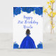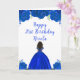 Esta tarjeta de cumpleaños incluye flores florales florales azules de la purpurina real falsas y una hermosa princesa con piel oscura y un vestido elegante. Esto es perfecto para una fiesta de cumpleaños.