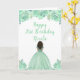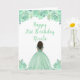Esta tarjeta de cumpleaños incluye flores florales de color verde a la menta purpurina y una hermosa princesa con piel oscura y un vestido elegante. Esto es perfecto para una fiesta de cumpleaños.
