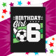 Tarjeta fiesta de fútbol de 6 años Chica de sexto cumpleañ
