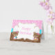 Una tarjeta de cumpleaños de oso chef cocinando para esa ocasión especial. El fondo es de cuadros rojos y lunares marrones. Las palabras se pueden cambiar a tus propios detalles