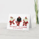 Santas negros bailando y divertidos sobre un fondo blanco. Diseño original y divertido que promueve la diversidad durante la temporada navideña.