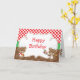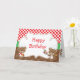 Una tarjeta de cumpleaños del Oso Chef de Cocina para esa ocasión especial. El fondo es de cuadros rojos y lunares marrones. Las palabras se pueden cambiar a tus propios detalles