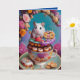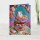 Tarjeta Fiesta del té de hámster sirio blanco con donas AN