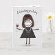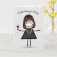 Tarjeta Figura de palo Chica de cumpleaños con vino rojo