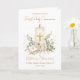 Tarjeta First Holy Communion Candle Bible Greenery Leaves