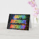 This multicolored and fun birthday greeting card design features the message "HAPPY BIRTHDAY," and the common first name "BETHANY" with the letters having a colorful rainbow spectrum like gradient coloring pattern. The background of the front also features a colorful pattern inspired by the appearance of bursting celebratory fireworks. The inside features a custom greeting message, or could perhaps be cleared and left blank if a message is to be written by hand instead. A greeting card like this might be a fun way to send a personalized birthday message to somebody named Bethany. [~Z0000350]